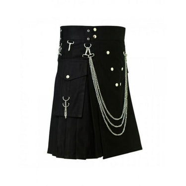 Black Fashionable Utility Kilt With Chains
