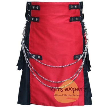 Black & Red Fashionable Kilt With Detachable Chain
