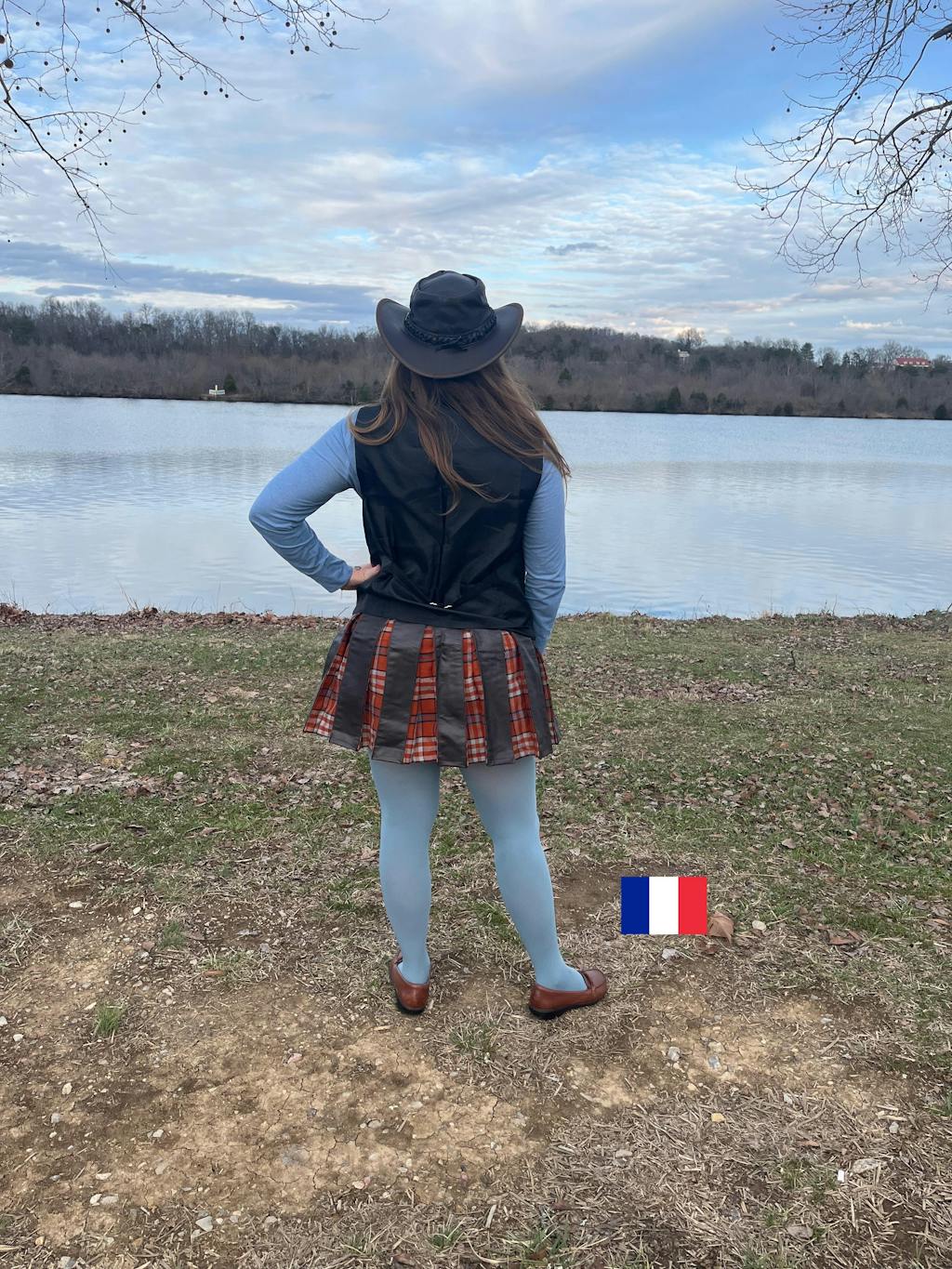 Place the tape at the belly button and measure down to the middle of your knee. This is your kilt length.